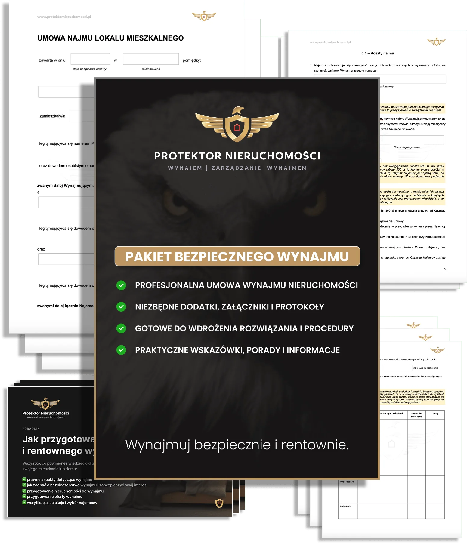 Profesjonalna umowa najmu, skutecznie zabezpieczająca wynajem nieruchomości – w pakiecie z niezbędnymi dodatkami oraz praktycznymi poradami. Wszystko, czego potrzebujesz do samodzielnego i bezpiecznego wynajmu swojej nieruchomości.